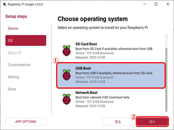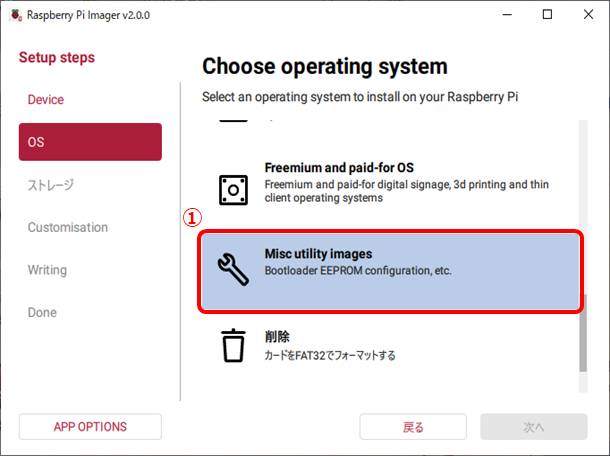 ①Bootloader(Pi4 family)を選択