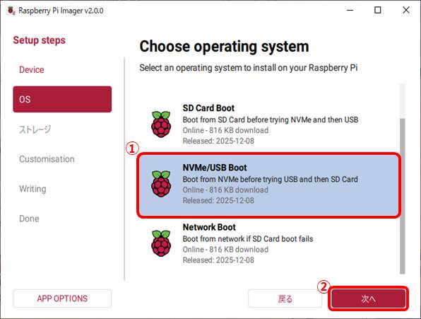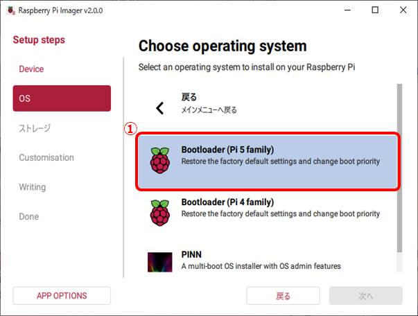 ①Bootloader(Pi5 family)を選択