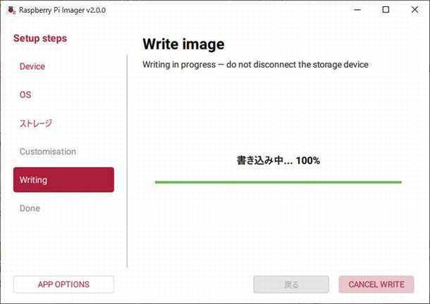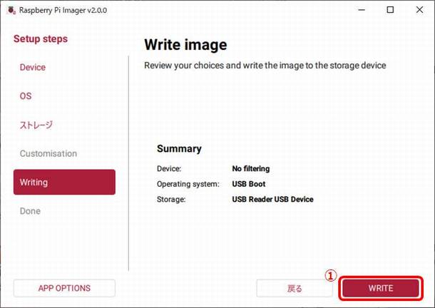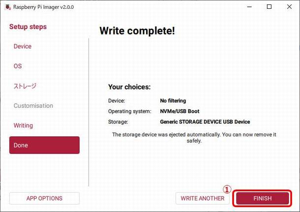 ①FINISHを選択するとRaspberry Pi Imagerが終了します。