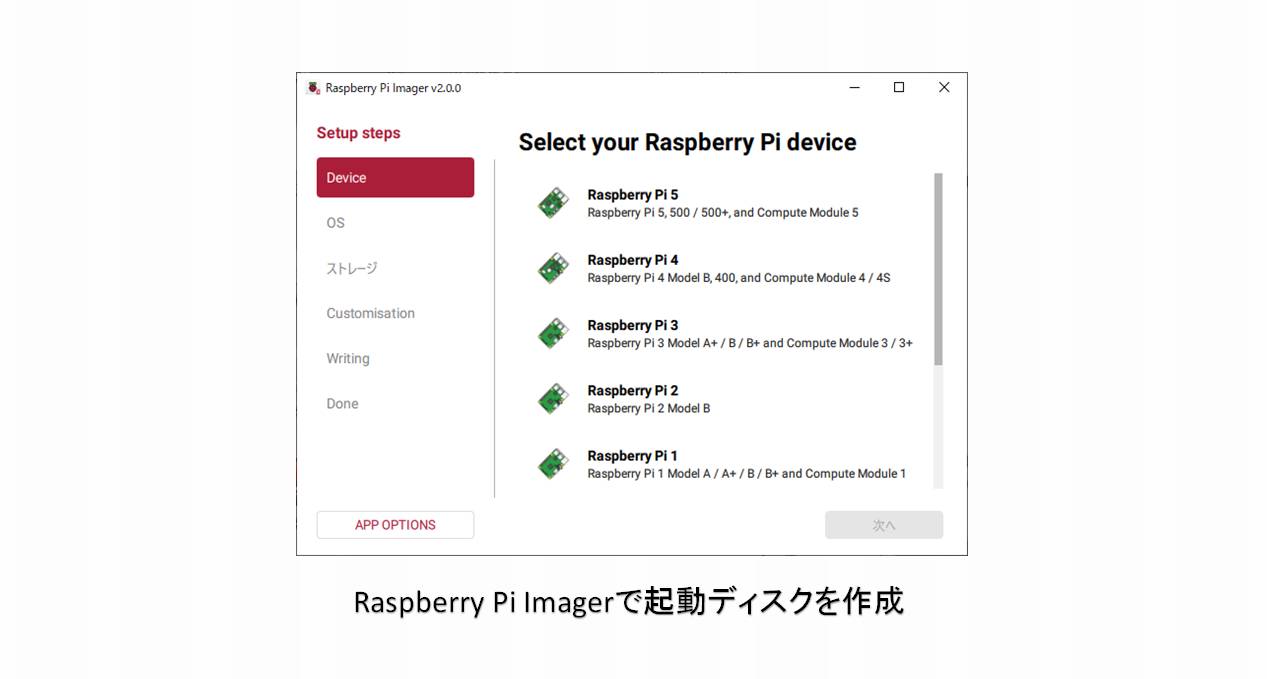 Raspberry Pi Imagerを使って、Raspberry Pi5の起動ディスクを作成する方法を説明します。