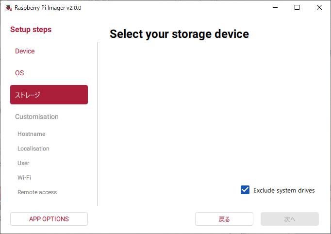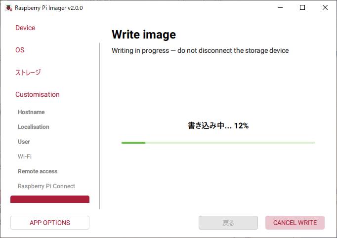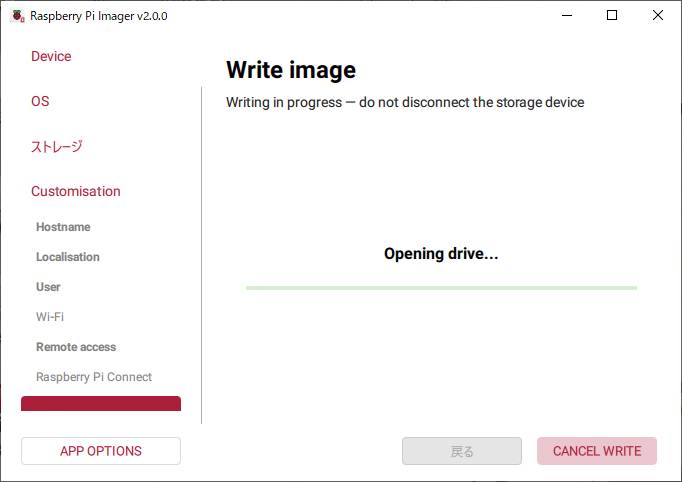 Raspberry Pi Imagerを起動して、起動ディスクを作成します。