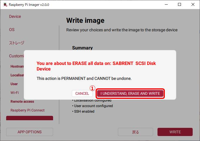 ①I UNDERSTAND,ERASE AND WRITEを選択