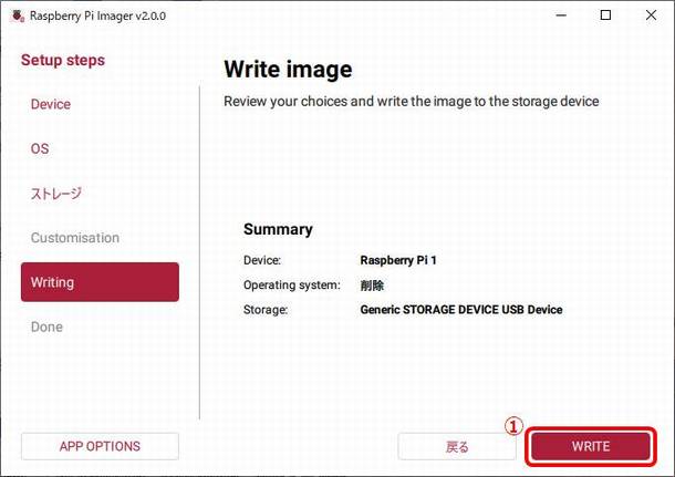 ①WRITEを選択