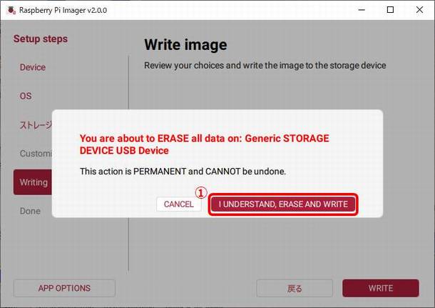 ①I UNDERSTAND,ERASE AND WRITEを選択