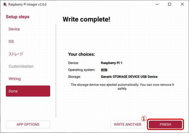 ①FINISHを選択してフォーマットを終了します。