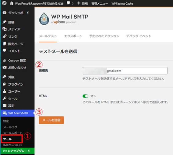 WP Mail SMTPの機能を使用して、メールが送信できるかテストします。