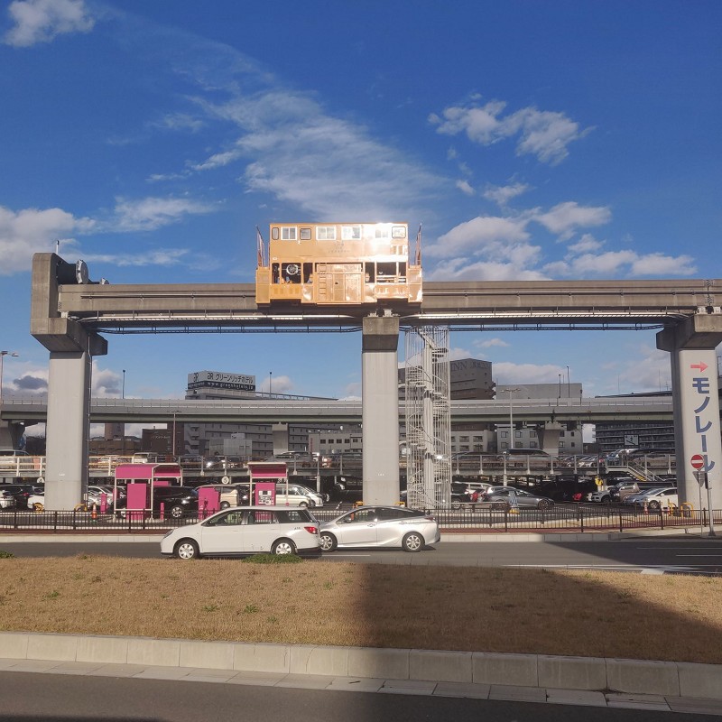 大阪空港のモノレールの端っこに、黄色いものが止まっていました。なかなか見かけないものです。