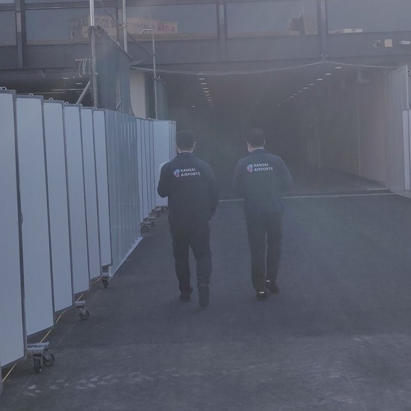 職員さんの背中にも、同じマークが印刷されていて、「KANSAI AIRPORTS」の文字が書かれています。